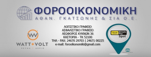 customer tabsΕπικοινωνίαhttp://forooikonomiki.grΛογιστικές- Φοροτεχνικές ΥπηρεσίεςΥπηρεσίεςΛεωφ. Κύκνων 36, ΚαστοριάΚΑΣΤΟΡΙΑΜΑΚΕΔΟΝΙΑ 2467029703 6932220738forooikonomiki@gmail.comΦΟΡΟΟΙΚΟΝΟΜΙΚΗ Ο.Ε - ΓΚΑΤΣΩΝΗΣ ΑΘΑΝ & ΣΙΑ Ο.ΕΦοροοικονομική Ο.Ε Το προτείνω (έχει προταθεί 0 φορές) ΦωτογραφίεςFacebook LikeShare on FacebookTweet Widget